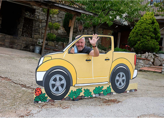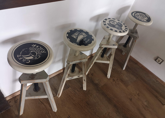 Carteles publicitarios de diferentes marcas de bebida, comida, motor, etc. Realizados con la madera de pallets reciclados.